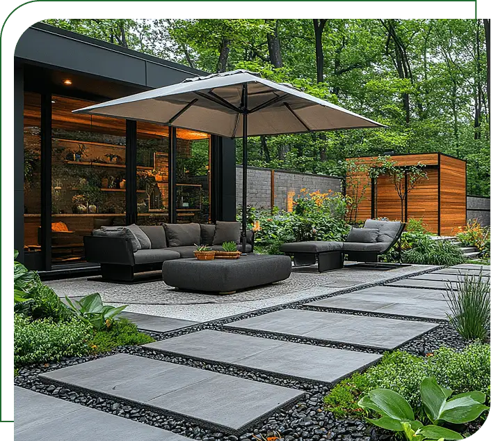 This service includes the use of stone in designing exterior decorations, such as pavements, curbs and columns, to add aesthetic qualities and a unique character to the projects.